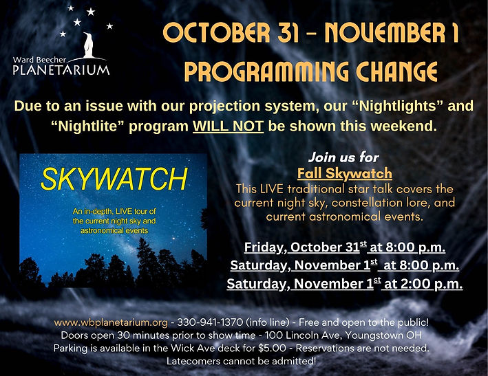 The Ward Beecher Planetarium, located on the Youngstown State University (YSU) campus, serves as an astronomy and science education resource center for the Mahoning Valley and surrounding communities. A YSU facility in the Department of Physics, Astronomy, Geology, and Environmental Sciences (PAGES), we support astronomy teaching on campus and provide a variety of educational programs to public and private groups of all ages.